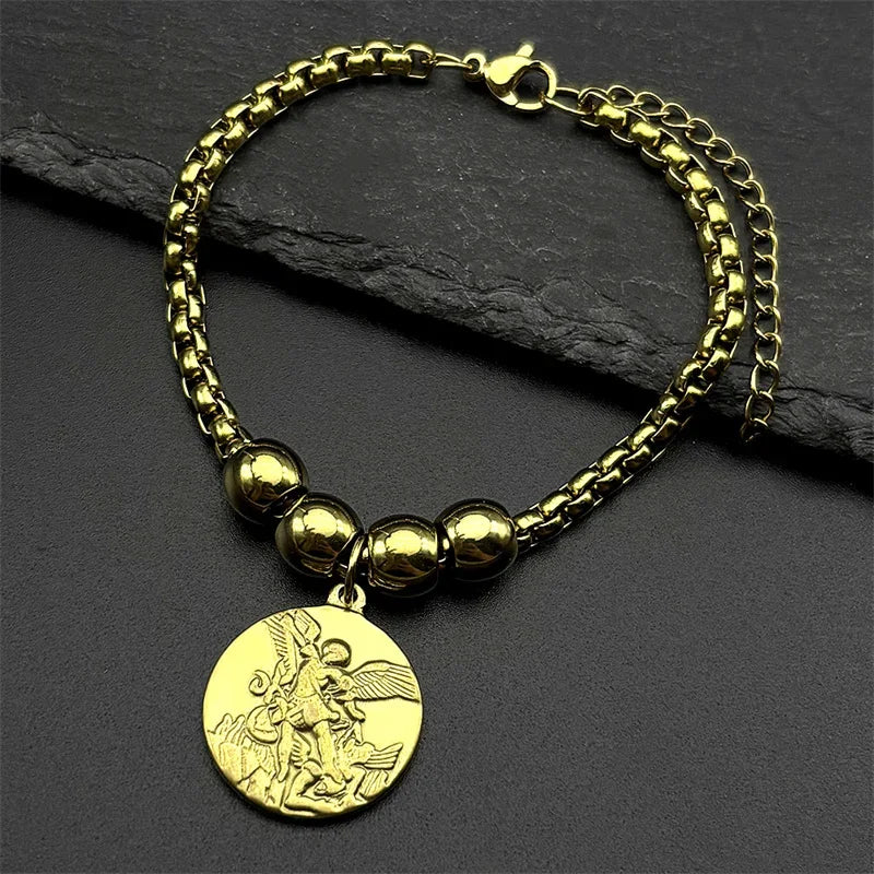 🕊️ Design poderoso: pingente com a figura do Arcanjo São Miguel, símbolo de proteção e vitória.